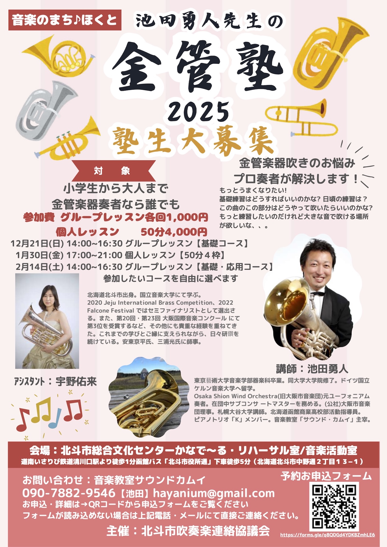 北斗市吹奏楽連絡協議会の「池田勇人先生の金管塾2025」が開催されます。