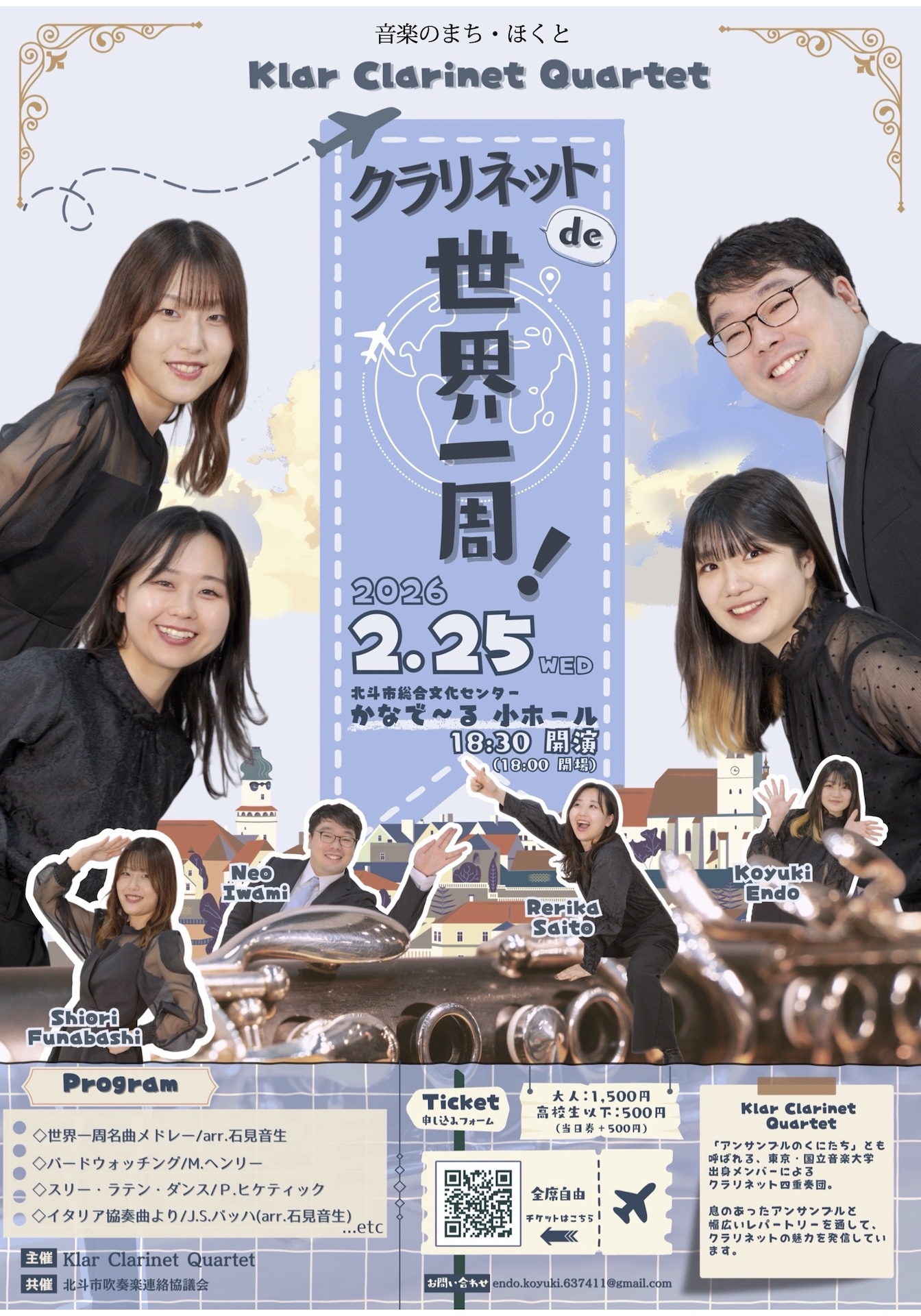 クラリネット四重奏団コンサート「クラリネット de 世界一周!」