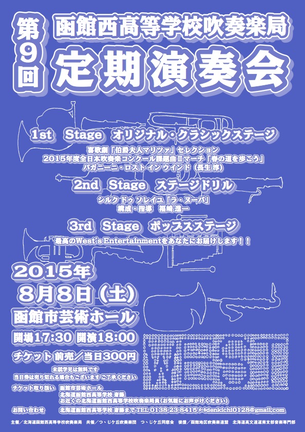 北海道函館西高等学校吹奏楽局の第9回定期演奏会が開催されます。